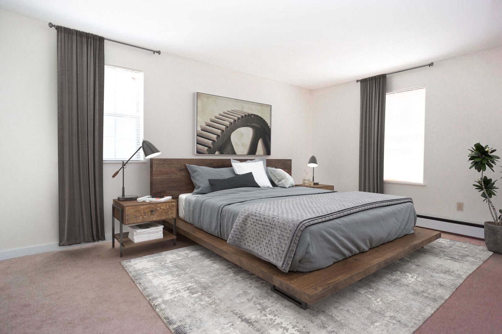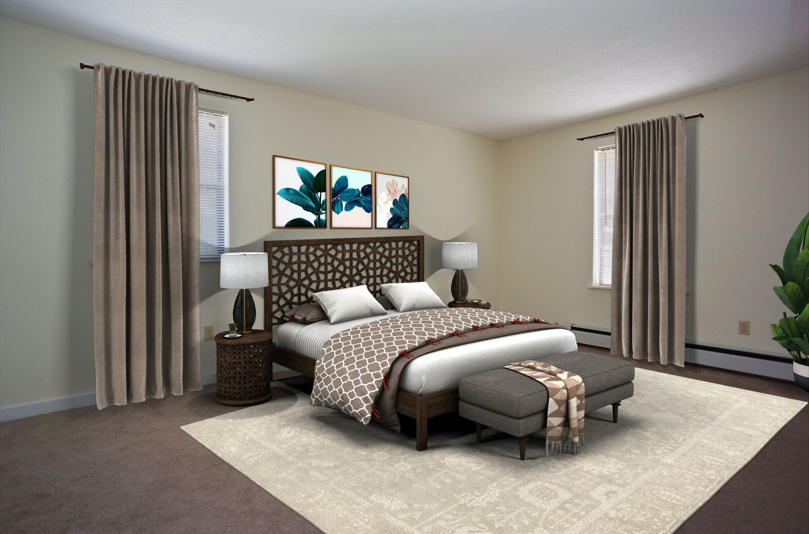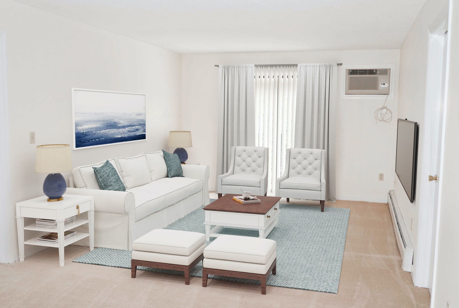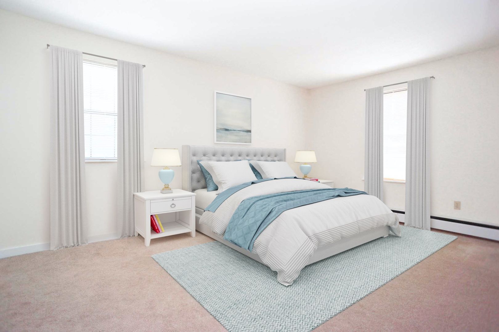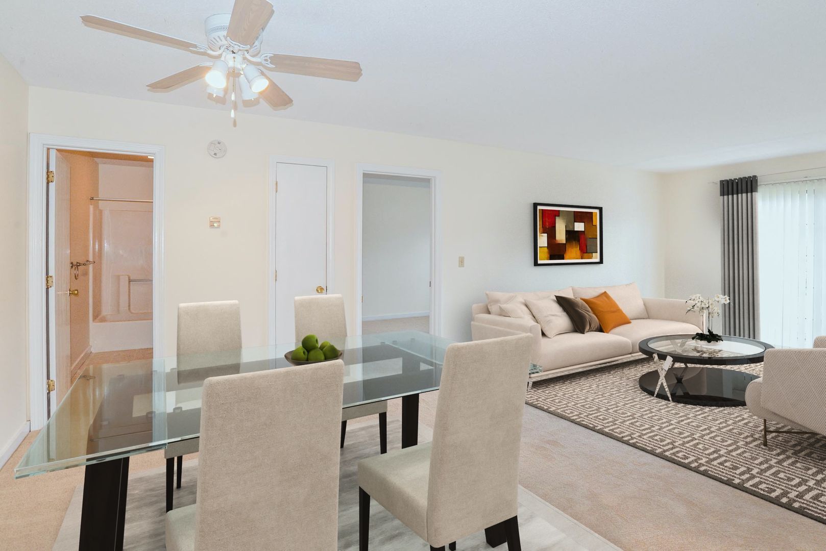This spacious two-bedroom apartment features stylish appointments, such as large light-welcoming windows, wall-to-wall carpeting, dishwasher, lighted ceiling fans, and a soft neutral color palette to complement your personal aesthetic. Interiors flow easily with more than enough room to live comfortably.