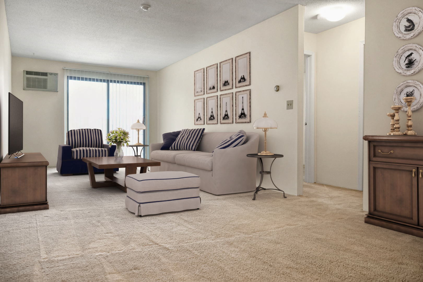 - Wall-to-wall carpeting